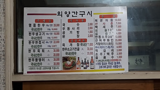 때와 시를 가리지 않는다. 어딘가 인사를 드릴때에도 부모님을 모실때에도 친구가 나를 만나러 올때에도 거창원탑이라 단언한다. 점심엔 버섯전골을 저녁엔 부위별 구이를 강력추천한다. 해당식당은 안심, 등심은 가성비가 좋고 천엽과 선지도 나와있다 물론 상당히 싱싱하며 육회도 가격대가 좋게 진열되어있다. 해당식당에 나만의 주문은 새우살과 안창살이다. 어렸을때부터 내가 생각했던 소고기라함은 입에서 녹아 없어지는 것인데 다른곳의 새우와 안창살 외양간구시의 것과 비교가 되지 않는다. 차원이 다른 맛으로 연말연시 한달전 예약하지 않으면 자리가 없을 뿐더러 4인 미만 예약시 룸은 잡기도 힘들다. 구성, 서비스, 주차 뭐하나 흠잡을 곳이 없다. 내가 생각한...