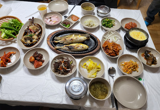 Read more식당앞 주차장있어요. 점심시간에 사람들 많은 편입니다. 생선구이 제육볶음 나오는 백반상 1인당12천원입니다. 주문하면 바로 나오구요. 각종 밑반찬에 간장게장. 계란찜.제육볶음.조기구이.가자미구이가 나옵니다. 같이 사온 된장국도 깔끔하고 구수했어요. 생선구이도 담백하고 제육볶음은 반찬처럼 나오는거라 양이 좀 작습니다. 제육 비용 지불하고 추가 주문 가능하더라구요. 전반적으로 반찬 맛있고...