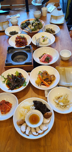 You come here for the sides!! Unbelievably delicious and "Muhan Re-fill", which means they give you endless re-fill of sides for the same set price. You choose either pork or beef for the set menu, bamboo rice alone costs 6'000 won, a set is around 27-29'000 won per person. Pricey, buut worth is if you're hungry! Despite COVID-19, this restaurant had quite a few guests over lunch, so it seems like a popular place to eat. And the seating...
