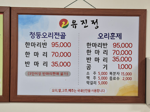 지난주 일요일 가족들과 함께 담양 유진정을 가려고 했으나 브레이크 타임에 걸려 바람이라도 쐴겸 화순 유진정으로 갔습니다. 그런데 들어가는 순간부터 손님이 들어왔는데도 아는 척도 하지않고 아이들까지 6명이라 한 테이블에 앉아서 먹으려고 하니까 자리가 좁으니 두 테이블에 나누어서 먹으라고 하기에 두 테이블로 나누어서 먹었습니다. 그런데 식사를 하는 도중에 청소를 하지를 않나 불러도 대답도 안하고~ 식사를 하는 중에도 기분이 좋지를 않았습니다. 그런데 더 가관인 것은 식사를 하고 나오면서 계산을 하는데 한 가족이 식사를 했는데 테이블을 따로 먹었다는 이유로 계산을 따로 따로 해야한다는 것이었습니다. 그래서 왜 요금을 더 받냐고 했더니 따로 먹으면 원래 요금대로 받는다고 하더군요~ 우리는 한 테이블에서 먹는다고 했는데 가게측에서 따로 먹으라고 해놓고 왜 요금을 더 받냐고 했더니 원래 그렇다는 말만 되풀이를 하였습니다. 오래간만에 가족들과의 즐거운 식사를 망치고 기분이 너무나 않좋았습니다. 그래서 월요일에 군청이 문을 열자마자 위생과에 신고를 하였고 지금은 그 결과를 기다리고 있는 중입니다. 서비스와 질 모두가 엉망이었으며 모처럼만의 가족들과의 즐거운 식사를 망쳐서 너무나 기분이 좋지를 않았습니다. 물론 저만의 생각일 수도 있겠지만 리뷰를 보니까 왜 그런지 이유를 알 수가 있었습니다. 다녀오신 분들은 리뷰가 좋지를 않더라구요~ 다시는...