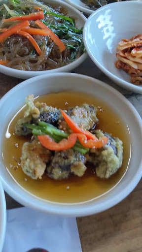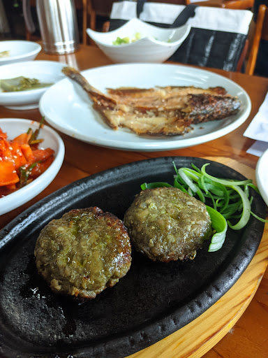 Being situated in green tea land (Boseong), we went for the green tea themed lunch (녹차정식), which has lots of side dishes, one 떡갈비 (tteokgalbi, marinated beef patty, with green tea leaves worked in), and 보리굴비 (bori gulbi, a grilled croaker). The rice was also nice, and along with everything, a large bowl of cool green tea is given to each person for the purpose of putting some spoonfuls of rice into and then eating a spoon of rice and green tea with each piece of the croaker. I wasn't too crazy about this combination. Everything on its own is delicious, but making the rice drenched in cold green tea didn't really sit well on my pallette. To...