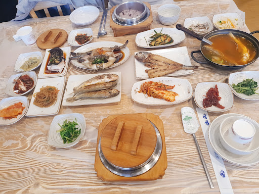 The main dishes were two dried yellow corvina per person, barley corvina, soy sauce marinated crab, and croaker soup. It was also good to eat rice in a pot and make nurungji. Gulbi was soft, and soy sauce marinated crab was good to eat. The unfortunate thing was that the barley dried yellow corvina was a little hard, and the croaker soup was fishy, so I thought it would be good to boil it a little longer. It was good that the side dishes came out neatly. The bathroom was equipped with...