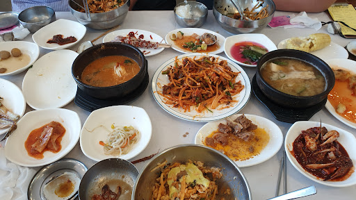 The food was fine. It wasn't all to my liking, but that's because I have a foreigner's palate. My girlfriend (who is Korean) enjoyed the food just fine. The service was fast and polite. The atmosphere, however was lacking. We walked in from a very hot outdoors to find that the interior was barely any cooler, and that there was no AC. Instead, oscillating fans are dispersed throughout the restaurant. We came at odd hours, so we were the only customers, but there was no music, so it was dead quiet. There were flies bothering us for almost our entire meal. Recommend the food, but the restaurant experience fell...