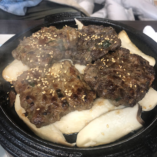 We came here because it had good reviews. Sadly, we wound up being disappointed by the food. We ordered the grilled short rib patties (one beef, one pork), and the samgyeopsal. What we received were four hamburger patty-like pieces of composite meat. We had expected the samgyeopsal at least to come out as pork belly slices. We couldn't really differentiate between the pork meats. The meat patties as a whole weren't really anything special. The rice served with it seemed to have been cooked earlier and reheated, as it was all clumped together, rather than being easy to separate out. And no, it wasn't meant to be a glutinous rice. The banchan sides, too, left us underwhelmed. The radish kimchi was more squishy than crunchy. Overall, it was just not a...