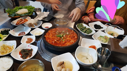 음식이 나오기까지 10분~15분정도의 시간이 걸려서 식당안을 두리번 거렸어요ㅎ 현지인들이 가족단위로 식사하러 오는 느낌이었어요. 여행온 젊은 연인들도 곳곳에 보였구요. 가격만큼 배가 빵빵해져서 나왔네요. 반찬들이 맛있었고 돼지고기도 돌판에 나오니 따뜻하게 먹을 수 있어 좋았습니다. ^^ 시래기국은 약간 매콤해서 아이는 못 먹었지만 동치미국이 맛있어서...