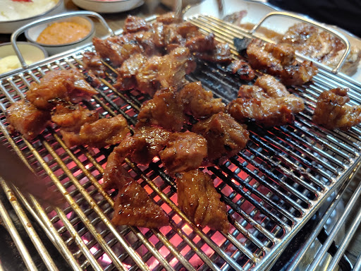 ♥여긴 직원분들이 첨에 설명해 주시는데, 고기 굽기 전, 가위로 잘라주고 갈매기살 처럼 집게로 돌려가며 익혀줘야 해요 (불 엄청 세요.. 타지 않게 주의※)