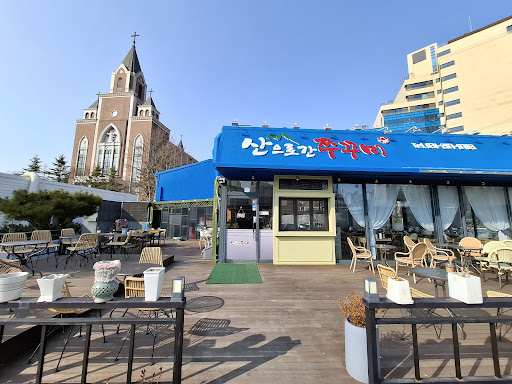 이 가게는 수원시 장안구에 있으며, 약간 산속으로 들어가는 외진곳에 위치해서 대중교통으로 가기에는 조금 불편함. 승용차로 가는게 편하고, 전용주차장이 있어 주차하기 편함. 수일여자중학교, 송원초등하교 및 경기도교통연수원쪽에서 작은 길로 약 100m 정도 올라가면 한국인의 밥상이라는 식당과 산으로간 쭈꾸미라는 이곳 가게가 보임. 이 가게는 단독건물로 외관은 파란색으로 칠해져 있고, 외부는 식사와 차를 마실 수 있도록 잘 꾸며져 있음. 내부로 들어서면 깔끔한 인테리어로 좌석이 많이 있어, 대기 없이 바로 식사 가능함. 아기 의자도 준비되어 있어, 가족들이 편안하게 들려서 식사 할 수 있도로 되어있음. 특히, 건물 내부의 통창쪽 좌석에서는 푸르른 풍경을 감상하며 식사 할 수 있어 매력적임. 메인메뉴는 쭈꾸미로 보통 세트로 많이 시키며, 단품 메뉴와 추가메뉴가 있어 기호에 맞게 주문하면됨. 이번이 4번째 방문으로, 쭈꾸미세트(1인 17,000원)을 주문함. 쭈꾸미 세트는 쭈꾸미볶음, 5종 산채나물, 샐러드, 도토리전, 도토리묵사발, 곤드레 가마솥밥, cafe 이용권으로 구성되어 있으며, Cafe이용권은 식사 후 원하는 커피 및 음료를 마실 수 있음. 전체적으로 정갈하게 나오며, 특히 5종 산채나물은 잘게 썰어져 나와서 밥에 비벼먹기 좋게 되어 있음. 곧드레 가마솥밥에 산채 나물을 버무려, 쭈꾸미를 올려먹으면 되는데, 맛이 나쁘지 않음. 그리고, 도토리묵사발은 여름에는 차갑게, 겨울에는 따뜻하게 줌. 직원분들은 친절함. 그러나, 개인적인 평가로 메인인 쭈꾸미볶음은 2인분 치고는 다른 곳과 비교하여 양이 매우 적었음. 그리고, 생각보다 짠맛이 강했음. 개인적으로 많이 달거나 맵지는 않고 적당한 불맛도 있었지만, 저번에 방문에서 먹었을때보다 짜서 먹기가 불편했음. 밑반찬으로 나오는 콩나물과 무생채는 셀프바에서 추가로 가져다 먹을 수 있음. 쭈꾸미 세트식 사 후 Cafe 이용권으로 카운터에서 커피 및 음료를 주문할 수 있음. 날씨 좋은 날에는 바깥에 앉아서 여유있게 마시기에 좋음. 결론적으로, 쭈꾸미볶음 양이 다른곳보다 적게 느껴졌으며, 기존에 비해 짠맛이 강해서 맛있게 먹기는 애매했음. 그러나, 같이 나오는 메뉴들의 맛이 적당해서 쭈꾸미를 좋아 하신다면 한번쯤 방문해서...
