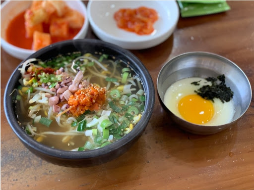 Read more맛은 깔끔하고 오징어젖 밑반찬도 먹을만해서 3점 수준봅니다 서비스와 친절도는 물도 안갖다줘서 물달라고하니까 그때서야 셀프서비스라고 갖다먹는거라고 퉁명스럽게 말하는 서빙아줌마 때문에 0점 입니다. 가격점수는 소금간에 날계란도 안주는데 콩나물국밥이 8천~9천이면 넘 비싸서 0점 입니다. 물서빙도 안해주면서 안내서비스...