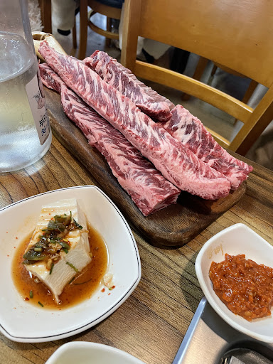 Read more정말 너무 맛있게 잘 먹었습니다! 다른 집보다 돼지갈비 색깔이 조금 연한 편인데 다른 인공적인 재료 없이 과일로 맛을 내서 그렇다고 합니다..! 그래서 그런지 제가 보통 고기만 먹으면 다음날까지 더부룩한데 오늘은 실컷 먹고 몇 시간 지나지도 않아서 소화가 되더라고요..?? 진짜 영향이 있는지는 모르겠지만 암튼 맛은 당연히 너무 맛있습니다!!ㅎㅎㅎ양도 푸짐해서 배 터지게 먹고 나올 때는 넘 배불러서 생각도 못 했는데, 지금은 3인분만 포장해올걸 진짜 후회 중입니다...ㅠ 그리고 저는 김치찌개도 주문해서 같이 먹었는데 진짜 강추합니다...!! 완전 밥도둑....꼭 드셔요! 나오는 반찬들 진짜 다 맛있는데 그중 지존은 계란찜입니다. 계란찜 진짜 미쳤어요. 다들 계란찜 꼭 자기 자리 앞에...