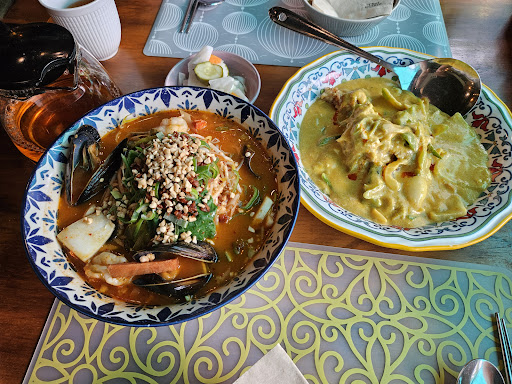 Read more똠양꿍 쌀국수, 푸팟뽕 커리 (1인분), 땡모반 주문. 일단 가게 내부가 깔끔하면서 예쁘고 바로 테라스쪽에는 트여져있는데 푸른잔디가 보이는 공원쪽과 연결되어있어서 분위기가 좋다. 일단 푸팟뽕 커리나 똠양꿍을 1인분으로 시킬 수 있는게 좋음. 맛은 전반적으로 굉장히 현지화가 된 맛. 맛은 있는데 태국 향신료 느낌이 너무 없어서 아쉬웠다. 특히 똠양꿍 쌀국수는 매콤새콤한맛, 태국현지맛 두가지 버젼이 있어서 후자로 시켰는데도 내 입맛엔 조금 아쉬웠고 특히 너무 달았다. 커리는 살짝 기성제품 맛이 살짝 났지만 그래도 맛있고 들어있는 소프트크랩이랑 잘어울렸다. 술을 안파는게 조금 아쉽다. 무알콜맥주는 있음. 땡모반은 맛있었지만 설탕이나...