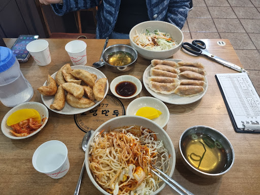 Read moreIt's in a great spot, really famou/popular (and for good reason!), so expect a wait. I went mid-afternoon and "only" waited 20 minutes. Hen I came out, the wait was a whole lot longer. Most importantly, the food is fantastic. While it's simple stuff- mandoo and noodles- it really hits the spot, and is filling while still leaving you wanting more because it's so good! I had the spicy cold noodles (쫄면), steamed kinchi mandoo, and fried meat mandoo, and it...