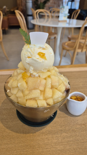 그리고 이 우유 얼음이 진짜 대박이에요. 연유도 같이 들어간 건지 너무너무 맛있어서, 우유 얼음만 퍼먹어도 정말 맛있더라고요 ㅠㅠ 양도 이렇게나 많을 줄 몰랐는데, 끝도 없이 나오는 복숭아랑 우유 얼음에 배가 엄청 불렀어요. 위에 올라간 아이스크림도 짱맛! 복숭아랑 우유 얼음, 아이스크림 한입 가득 넣고 먹으니 천국이 따로 없었어요. 수원시청역에서 분위기 좋고 맛있는 디저트 카페...
