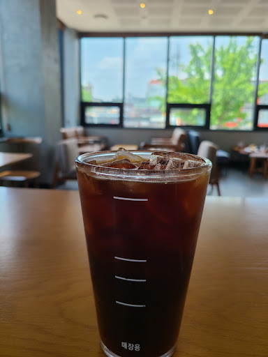 I like that people have choices like Starbucks, but I prefer Dunkin'... Had to order Starbucks because I got a gift card... 5000 won medium ice Amercano... They don't call it "medium" but that's...