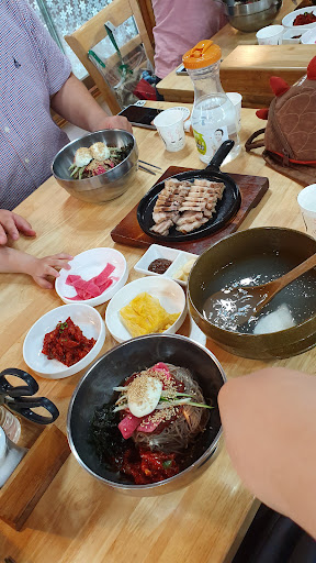 Read more부모님 모시고 여행갔었는데, 부모님이 속초 고성 양양에서 드신 요리 중 가장 맛있게 드셨습니다. 시원한 국물에 먹는 달콤새콤한 동치미막국수도 물론 맛있지만, 비빔국수가 맵지 않고 중간에 들어있는 고명이 감칠맛을 더해주어 아주 맛있습니다. 나는 무조건 물냉면/물막국수가 좋아! 이런 분들이 아니라면 고루 드셔보시기 바랍니다. 수육도 아주 맛있어요. 반찬으로 나오는 젓갈도 아주 맛있는데 직접 만드시는 거고 판매도 한다고 합니다만, 여름에는 물량이 달려서 식당내에서만 제공하고, 10월 이후에는 전화로...