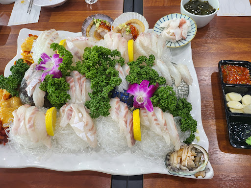 점심 특선 먹었어요. 1인분에 15000원이었구요. 전복죽도 고소하고 잘 튀긴 튀김, 김막기, 모둠회도 두툼하고 신선해요. 회무침, 생선튀김, 해파리냉채, 콘샐러드도 나왔는데 맛있어요. 매운탕을 잘 끓이네요.공기밥은 추가 요금을 받지만 배부른데도 밥 한그릇을 뚝딱 다 먹게 만듭니다. 계산대 근처에 매실과 커피, 석류 음료가 있어서 계산하고 나오면서 들고 나와서 시원하게 후식으로 잘 마셨어요. 일하시는 분도 친절하시고요. 다음에는 다른 메뉴도 먹으러 갈래요. 좀 늦은 시간에 갔어서...