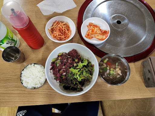 Read more금오동에 육회비빔밥하면 유명해서 많이 찾는다하죠^^근데저는 맛집이란 생각은 안드네요^^ 육회가 신선하긴하지만 상추외에 특별히 들어가는 재료도없구ㅎㅎ 반찬도 같이 주시는 선지국이랑 먹으면 괜찮긴한데ㅎㅎ 직원분인지 친절하지도 않고 의욕이 없어보이셨어요ㅎ 좀 지저분한면은 있어요...그래도...