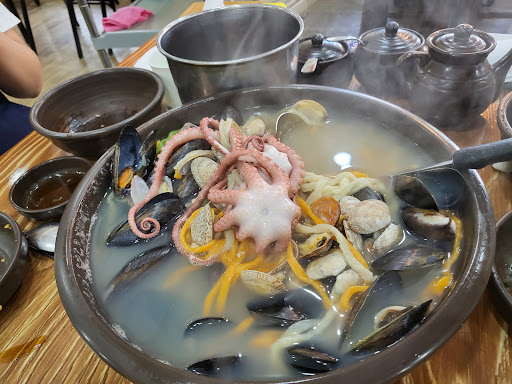 Read more해물찜은 너무 맛있게 먹었는데, 이집은 칼국수는 그냥 그래요. 이집은 칼국수보다 남들 안하는 팥죽으로 더 유명해요. 에어컨은 있지만 너무 적어요 좀 덥습니다. 아이들이랑 와서 먹기에도 좋아요... 그러나 통으로 터진 구조여서 조용한 식사대접은 절대 할 수 없는 곳이지요... 좀 시끄럽고 직원 친절도도...