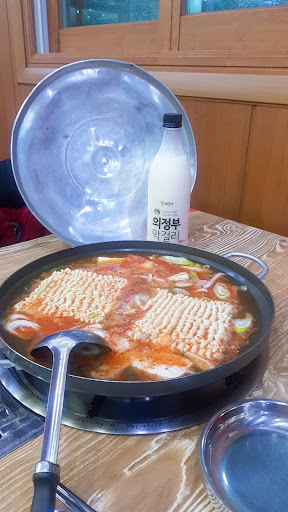 Read moreWenn duuuuu allein reist, komm' hier ne 호불호 갈릴 수 있음. 가. 고독을 즐기는 혼밥러에게는 비추. 인싸 혼밥러에게는 괜찮을 듯. 좋게 말하면 관심, 나쁘게 말하면 오지라퍼들이 많음. 강원도보다 더 시골 마인드. 나. 주로 단골 손님들이 찾는 듯. 다. 주문을 받는 게 아니라 입장시 인원수대로 자동 주문. 라. 맛은 오뎅식당이랑 다른 게 별로 없음. (오뎅식당과 다른 맛을 찾는다면 다른 가게. 대체재를 찾는다면 여기도 no상관) 마. 추가 공기밥 무한리필(셀프) 바. 티비나 유튜브 안 나온 집 찾아서 들어갔는데, 들어가 보니이 집도 티비 나온 집이라 개인적으론 실망. 사. 부대찌개라는 음식 자체가 굳이 명소 찾아서 먹을 음식은 아님. 다만, 추억 삼아 한 번 오는 건 지역경제를 위해 추천. 아. 해장용으로는 적당