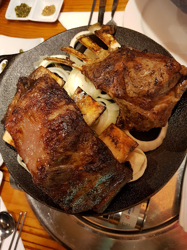 음식:고기-향신료 강함, 살짝 질긴 편. *스테이크: 미디엄과 미디엄웰던 주문했으나..그냥 웰던.. ;; (오버쿡.. 겉바속퍽..) 함께 나왔으나 서버의 음식 안내 없음. 누가봐도 미디엄이 없어서.. 미디엄.. 언제 나오나.. 했음. *아사도 갈비: 소갈비, 양갈비 주문했는데, 역시 같은 판에 나옴. 별도의 설명이나 안내 없었음. (양갈비 어쩔 수 없이 살짝 비릿;;) 양갈비 별로여서 소갈비 기다렸으나.. 역시 같이 나왔었다 함.. 식어서 더 퍽퍽퍽 함.. 가져갔던 개인 접시에 한조각씩들 남김.(말하지 않았지만 맛있지 않았다는..결과;) *곁들이 반찬: 정갈하고 맛있는 편. 소스로 나온 칠리,바질 맛있음. 샐러드,토마토 고수..그럭저럭.. 어차피 푸짐하게 개인 반찬 안주는거면, 접시를 바꿀 수 없다면(3분할식기?), 차라리 이쁘게 나눠 담아 자리 덜 차지하게 하는게 나을 듯. 고급스러워 보이고 싶어서.. 두손바닥 만한 접시에 김치 주먹만큼 명이나물 주먹만큼 나오는데..;;; 손님한테 접시 계속 옮기게 하는게 고급스러운가요?? 판대기 가져올때마다 우리가 치워줘야함. 치워달라함.. (접시를 치우시고 판을 가져오세요..;;)
