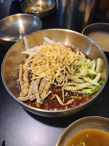 Read more소고기 수육&육회비빔밥&냉면을 주로 팝니다. 값진 소고기 수육 메뉴는 일 3회 한정 판매인데 가격 대비 가성비가 정말 좋습니다. 추가로 밥 볶아줘서 계란죽처럼 나오는 메뉴 덕분에 양도 많아요. 비빔면+불고기 세트도 불고기가 제법 달짝지근해서 비빔면과...