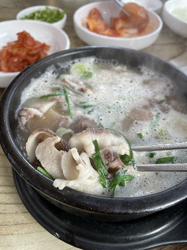 Read more굴화쪽에 유명한 국밥을 알아보던 중 여기의 국밥맛이 특이하고 맛있다고 추천받아 방문하게 된 곳입니다. 아이들과 함께 먹으로 갔었고 가격은 일반 국밥집과 비슷했구요.. 섞어 국밥은 돼지국밥보다 비싼편에 비해서 양은 별로 였지만 돼지비린맛이 올라오지 않아 깔끔했네요. 기름진 국물이 아닌맑은 국물베이스라 다데기와 청양고추를 넣어드시길 추천드립니다. 김치 깍두기 맛있었구요. 아이들은 소면을 잘먹네요(국물베이스가 국수 먹기 제격임) 주차장도 괜찮게 제공되는 편이라 종종와서 먹을것...