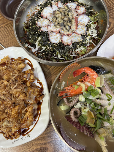 Read more울산에서 몸보신을 하자! 하고 급검색했다 역시나 오후 3-4시경이라 사람도 없고 건강한 맛집을 찾았다! 사장님이 직접 손질해주면서 친절히 설명해 주셔서 너무 좋았다 특히 닭은 익혀서 나온거라 바로 먹어도 되는데 국물이 베야 맛있다는 손님들의 말을 전해주면서 텝도 전해 주셨다 기분도 않좋았는데 사장님의 친절함에 마음이 따뜻해 졌다 역시나 다를까..? 해신 닭 전골을 시켰는데 우선 해물과 닭을 먹고 미역국수 그리고 죽을 주셨다 엄청 둘이 배불리 잘먹었다! 다음에도 또 올예정이다 !