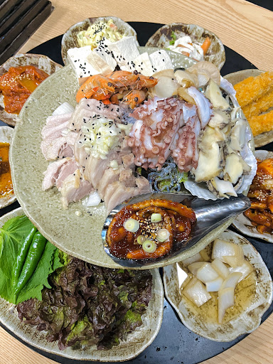 This has to be one of the best meals I have ever had in Korea. I am familiar with traditional bossam with pork. However, I was pleasantly surprised to try this seafood version. It included octopus, abalone, pork, boiled shrimp, tofu, kimchi, corn, lettuce, deep fried shrimp and so many other varieties of side dishes. There was so much food, my group wasn't able to finish it. Definitely worth the visit even if you don't reside in Ulsan. The owners of the restaurant were also very friendly and the service was...