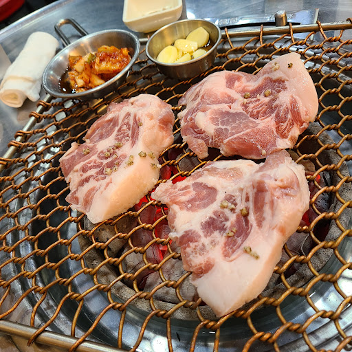 요즘 돼지영농후계자가 동네마다 하나씩 보이는데, 이집은 오픈한지 4년이 넘었다. 이집 주위로 고기구이집이 여럿 생겨났지만, 여전히 손님이 많다. 꼬들목살이 주메뉴이고, 양념목살과 껍데기가 있다. 개인별로 3종류의 소스를 제공한다. 참숯이라 고기가 노릇하게 잘 구워진다. 두툼한 비계는 고소하고 꼬들한 살코기는 육즙이 터진다. 양념목살 양념껍데기도 먹어볼만 하다. 된장찌개는 공기밥을 부른다. 술을 얼음빠께쓰에 담아준다. 화장실이 깨끗하다. 아쉽게도 최근 꼬들목살 품귀로...