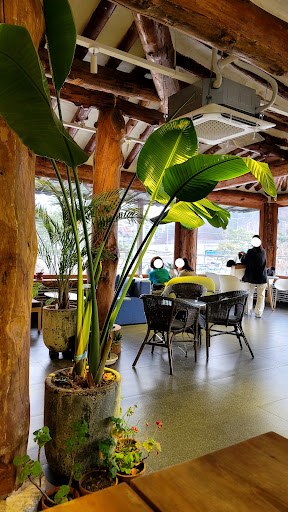 Read more한옥카페. 통나무 곡선과 창밖의 초록숲이 마음을 편안하게 해 줍니다. 커피맛도 괜찮고...