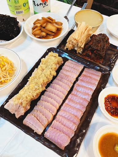 ✔️홍어삼합은 인원수에 따라 2인 / 3인/ 4인 주문 가능한데요. 저희는 수입산 2인상 주문했어요. 📌6만원으로 홍어삼합, 홍어애, 홍어전, 홍어맑은탕까지 코스로 즐길 수 있답니다.😋마늘소스 듬뿍 올린 삼겹수육과 묵은지, 갓김치와 함께 삼합으로 즐기면 💫막걸리, 소주 막 들어가요 ㅎㅎ