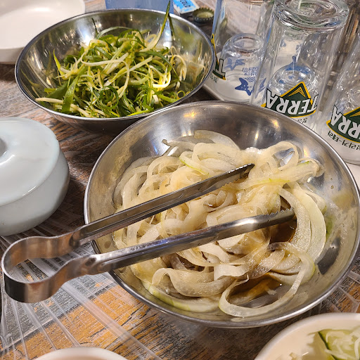 4인이상 예약하고 가서 웨이팅 없이 들어갔어요. 얼마전 친구가 방문했을 땐 바로바로 음식이 나왔댔는데 제가 갔을 땐 많이 밀려있어서 고기, 밑반찬, 식사류 전부 늦게 나왔어요. 이건 날마다 다른거 같네요.