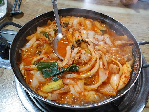 A korean reataurant with a single menu, a pork stew. A little bit tricky to find but there are plenty of parking lots in front yard if you arrive in the right place. You can add some topping like toufu and ramen in the stew(note. You have to order them separately) and soju...