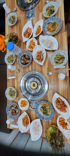Read more버섯오리불고기 정말 맛이 좋네요 정성이 느껴집니다 반찬 배열이 손님을 배려하는 상차림이었습니다 이런 상차림은 처음입니다 반찬이 상 맞은편에 있으면 먹기가 힘들다고 6명이 두테이블에 반찬은 3곳으로 나누어 차렸어요 맛깔나게 차렸네요 추천 합니다 반찬 배열...