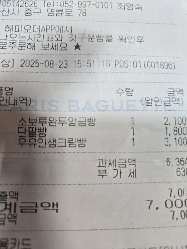 가게부쓰다보니 결제가 잘못된것확인하고 가게방문했는데 직원왈 cctv확인해야된다하고 미안하다소리도 없고 손님을 뭘로 생각하는지 1,800을2,100원 다른빵을 찍고 빵먹고싶을때마다 한번씩가는집인데 지나고보니 영수증확인안했는데 오늘같은실수...