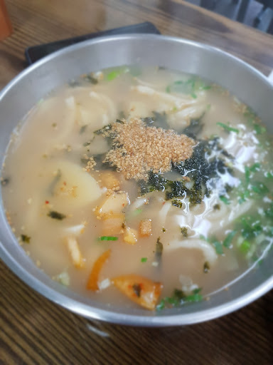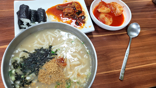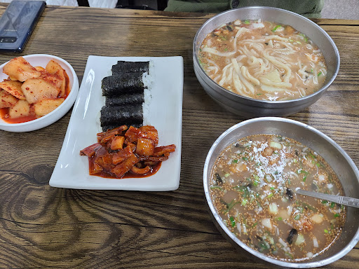 Read more노포. 정겨운 분위기. 투박하게 썰어서 오래 끓인 면발. 깔끔한 듯 되직한 국물이지만 밀가루 냄새 안나는 고소한 국물. 잘 모르겠지만 멸치 다시마 육수에 면발에서 풀어진 밀가루에 콩가루의 고소함인 듯. 위에 얹어주는 양념장도 매력있으나 개인적으로는 양념장이 조금 적게 들어갔으면 좋았을 듯한... 강한 양념의 어묵 오징어 볶음과 충무김밥도 맛있다.