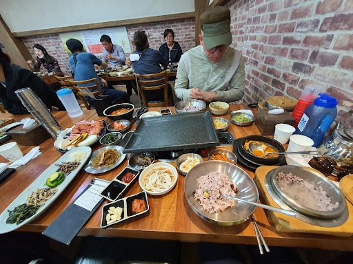 ย ย ย Read moreWe had the smoked duck, it came with many side dishes, bean paste soup and hot stone bowl rice. Everything was good. The service was fine, this place is really busy because its located right on the...