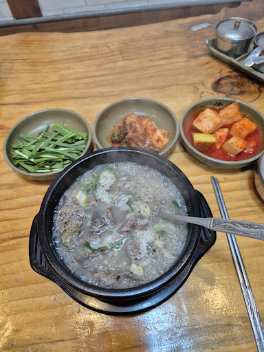 저녁에 방문. 사골순대국밥. 고기가 질김... 양념장을...