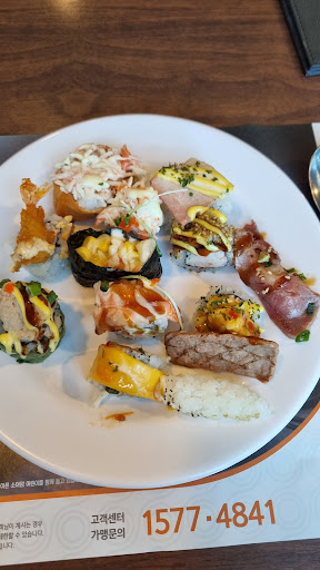 Read moreBusy place. Buffet sushi restaurant with a hot food section and dessert bar. Disappointed with the quality of the sushi. The chobap was old, the raw fish and beef was sitting under the warm lights for around an 50 minutes since we arrived (around 7:00pm), and no sushi was being made. Taste was subpar, and only the salmon tasted alright. Stomach felt upset the day after.