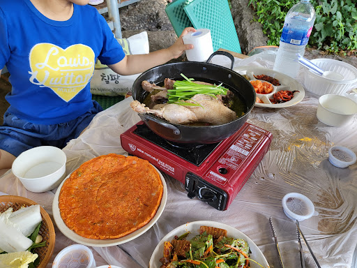 저흰 능이 추가없이 오리백숙으로 선택했구요. 맛은 걍 쏘쏘! 오리로스나 삼겹살 양도 터무니없이 적었지만.. 가져간 과일과 간단한 음식으로 남은 배를 채웠어요. 입구에서 외부음식 검사?제지를 하던데 자리까지 와서 살펴보진 않더라구요.