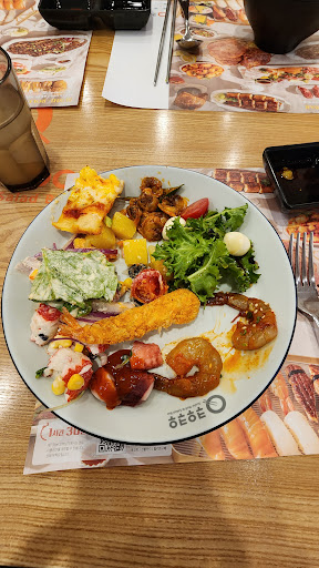 Read more평일 디너로 갔는데 전체적인 퀄리티가 좋았습니다. 기다리고 있는 손님이 있을 때는 1시간 30분으로 제한이 되어 있지만 웨이팅 때문에 어쩔 수 없다고 생각합니다. 이 점 때문에 불만을 제기하는 분이 있는 것 같은데 아직 새로 생긴 곳이라서 정보가 잘 전달되지 않았던 것 같습니다. 스프도 맛있고 샐러드 코너는 다 맛있었지만 육회에서 후추 향이 많이 나긴 했지만 나름 괜찮았고 해산물을 잘 못 먹는 사람들을 배려했는지 고기초밥이 정말 많았습니다. 또한 군함말이, 롤, 유부초밥, 회 등이 신선했으며 종류가 정말 다채로웠습니다. 피자나 치킨, 파스타, 튀김, 중식같은 핫디쉬도 뷔페라기에는 아주 뛰어난 질과 맛을 가지고 있었습니다. BBQ 메뉴도 따뜻했고 바베큐 소스, 케찹, 홀그레인 머스타드와 양배추 샐러드를 코너에 두어 느끼함을 덜 수 있게 해 준 것도 좋았습니다. 디저트 코너에는 아이스크림, 빙수, 슬러시, 음료수, 커피, 와플, 초코분수, 케이크, 과일... 정말 많은 종류가 있어 입가심도 좋았습니다. 단점이 있다면 어떤 메뉴를 가져가려고 했는데 눈앞에서 리필하러 들고 가는 게 조금 당혹스러웠습니다. 또한 폭립 바베큐가 없는 것 같았습니다. 그 아쉬운 점 빼면 많은 부면에서 매우 만족스러웠기 때문에 다음에도...