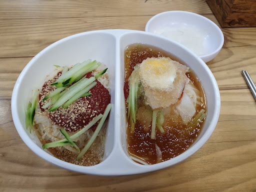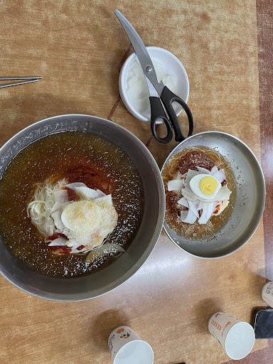 Read more북정공단 굴다리 건너편에 위치한 밀면집이다. 꽤 오래 전부터 자리한 집으로 여름이 다가오는 시기면 문전성시를 이룬다. 일반 메뉴는 밀면 외에도 칼국수나 우동을 취급하고 있다. 물밀면의 육수는 개인에 따라서는 다소 짜다고 느낄 수 있을 정도로 진한데 양념장을 풀어 면과 먹으면 간이 심심하지는 않다