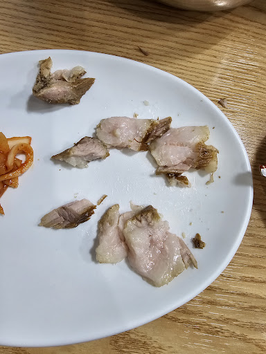 예전에 양산에 사는 친구 소개로 한 번 갔다가 맛있어서 명지에서 차 타고 와서 와이프랑 같이 재방문 했습니다. 하... 정말 화가 나는데 태어나서 음식 남기고 나온 가게 정말로 처음입니다. 몇 젓가락 집어 먹다가 다 남기고 나왔습니다. 사진 속 수육 중에 저희가 정상적으로 먹은 고기는 단 한 점도 없습니다. 제일 위에 보이는 고기만 그나마 정상이네요. 받은 전부가 저 상태입니다. 그냥 기름 덩어리를 썰어 주시네요. 마감 시간에 가서 그런가요?? 그럼 손님을 받지 마시던가요. 지금 먹고 바로 집으로 왔는데 아직까지 화가 안풀리네요. 이건 정말 아닌겁니다. 살다살다 식당 오고 기분 이렇게 안좋은적은 처음이네요. 기분 진짜 드럽네요. 다신...