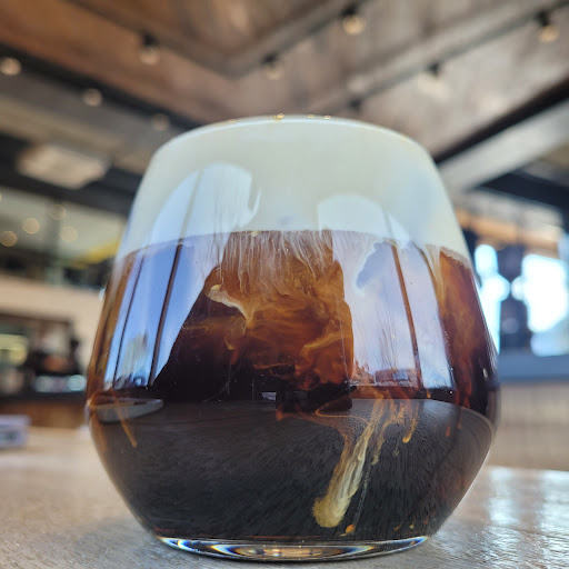 A salt coffee ( dutch + einspanner ) in Yangsan. salty and sweet coffee.. Parrking zone is large but odd shape.^^ Sea, salt coffee is basic!! a bread ,piece of cake is very expensive but very good taste and fresh!! Open kitchen and many crews movement is nice to watch during waiting your coffee. Large space and many peoples noise is not good...