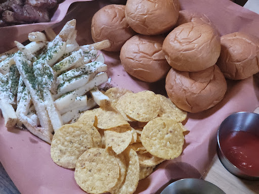 My wife and I have had dinner here quite a few times. The BBQ is excellent and the flavors are really authentic compared to the BBQ I used to have back at home in the USA. The menu is simple but everything is delicious. The side dishes are very good and the bread rolls are amazing. I really enjoyed the pork belly and beef brisket. They both had great flavor and were tender and juicy. They give you a variety of sauces to dip your meat in which really lets you experiment to see what you like best. If you enjoy American style BBQ this is a great place to go and you won't be...