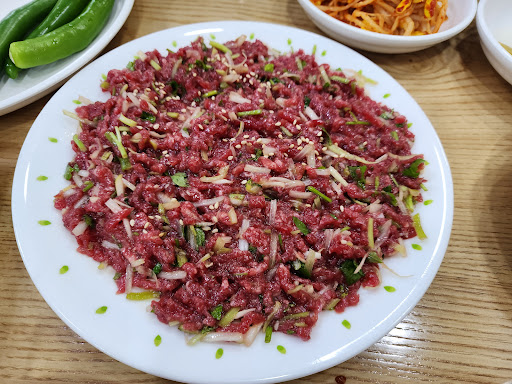 I visited a wonderful restaurant in Korea that served the most amazing beef tartare. The tartare was made with high-quality Korean beef and a secret sauce that made it tender and perfect in texture. The side dishes that came with the beef bibimbap were fresh, and the soup we cooked on the table was delicious. The portion of beef tartare was just right, the price was reasonable, and the service was excellent. The drive to try their famous beef tartare was definitely worth it, and we left feeling...