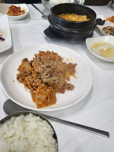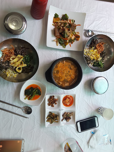 밖에 메뉴에는 없지만 제육볶음 메뉴가 있습니다. 11,000하는 가격이었고, 해당 사진 테이블세팅은 산체비빔밥 2, 제육볶음 1 하니 이래 나오네요. 중앙에 보이는 뚝배기는 청국장인데, 밥 반찬?정도로 먹기에는 조금 싱거웠고, 한 숫가락씩 먹기 적절했습니다. 제육볶음 맛은 아주그냥 환상적이었고요. 양념이 살짝 적었으나, 오묘한 맛이나며 그 맛이 좋았습니다. 참깨가 기본으로 올라가니 참깨 싫어하시는분은 빼달라 말씀해보세요. 물김치가 맛있습니다....