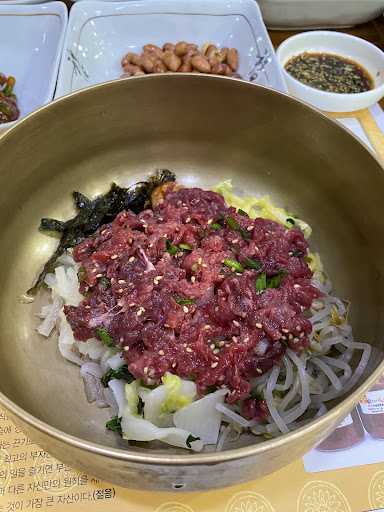 Read moreWe ordered raw beef Bibimbap which was pretty delicious and savory and came with lots of side dishes. But the one thing I didn't like was that I had to take off my shoes. When my group found our shoes, they were dirty because some people might have put their shoes on...