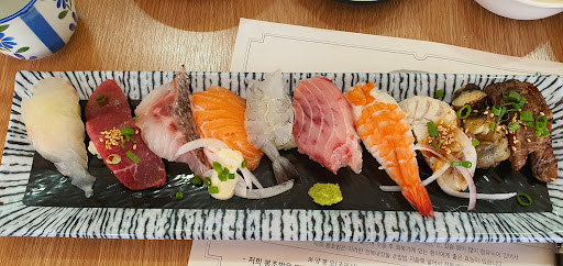 ●방문일 : 2021.07.10 ●주차 : 운 좋으면 식당 앞 도로에 하시거나, 좀 떨어진 공영주차장에 하세요. ●메뉴 : 점심특선초밥(점심 메뉴가 점심특선초밥(14,000원)과 점심모듬초밥(11,000) 2가지가 있었는데 무심코 점심특선으로 말해서 특선으로 먹었습니다.) 점심메뉴는 우동과 튀김이 없네요. ●서비스 : 써빙하는 직원이 좀 무뚝뚝하고 주문 후 대기시간이 좀 길어요. 인내심으로 기다리세요. ●처음에 작은 죽과 밑반찬이 나오고 좀 기다리면 초밥이 나옵니다. ●초밥 : 다른 초밥집에 비해 회가 굵고 좀 큽니다. 초밥에 중점을 둔것 같아요.(사진 참조)