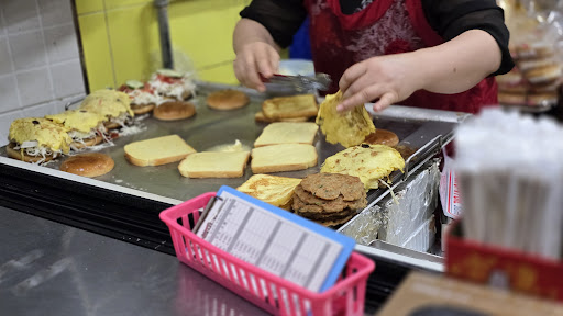 햄버거는 고기패티에 계란과 양배추, 오이 그리고 햄이 들어가 있는데 겉빵이 마아가린과 버터에 구워서 인지 바삭하면서 부드러운 한우햄버가의 맛 그리고 콜라가 아닌 저는 오뎅국물에 햄버거를 먹으면. 더 맛있는 것 같습니다 (지극히 개인적인 맛의견입니다)