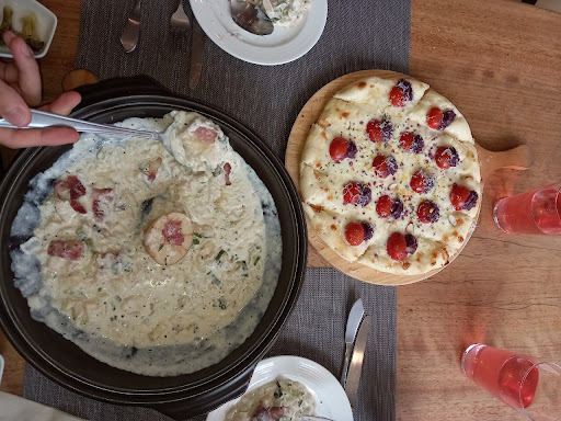 Read more신라스테이에서 하룻밤 묵고 돌아가는 길에 들렀습니다. "이탈리아 정통요리" 간판의 문구 보고 들어갔는데 주관적인 제 입만으론 여기 파스타는 아닌것 같습니다. 식당 통풍 안돼서 기름냄새 아주 심했습니다. 파스타 나오기전 애피타이저(appetizer)는 괜찮아서 기대를 했는데 너무 아닙니다. 봉골레 파스타는 대만에서 먹던 길거리 국수맛이 납니다. 봉골레에 파,양파,마늘이 들어가고 치즈까지 올라갑니다.. 묘한 맛이 납니다. 조개가 모시조개를 안쓰고 문어바지락 쓰는건 이해하는데 정말 맛이 묘합니다. 그리고 면상태가 너무 퍼져있어 식감도 느끼기 어려울 정도로 흐물흐물합니다. 리뷰에서 파스타가 맛있다고 해서 갔는데 영 아닙니다....차라리 피자를 먹을걸 했습니다.... 개인마다 입맛에 차이가 있으니 감안하시고 리뷰보시기 바랍니다. 봉골레는 이름을 바꿔도 좋을정도로 정통...
